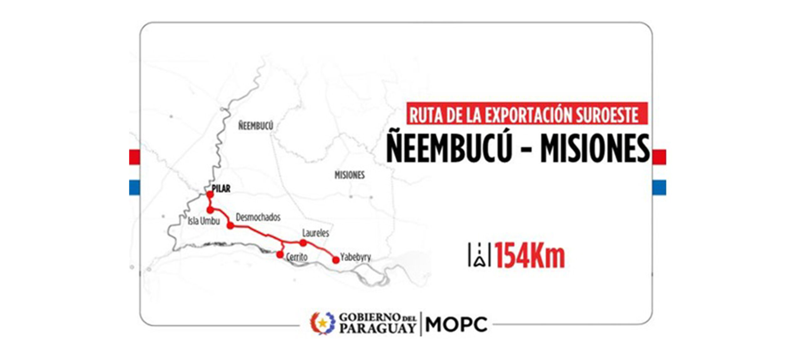 El Ministerio de Obras Públicas y Comunicaciones (MOPC) anunció la confirmación de la construcción del Corredor Suroeste (“Proyecto”), que conectará los departamentos de Misiones y Ñeembucú. El alcance del Proyecto abarca las siguientes obras: